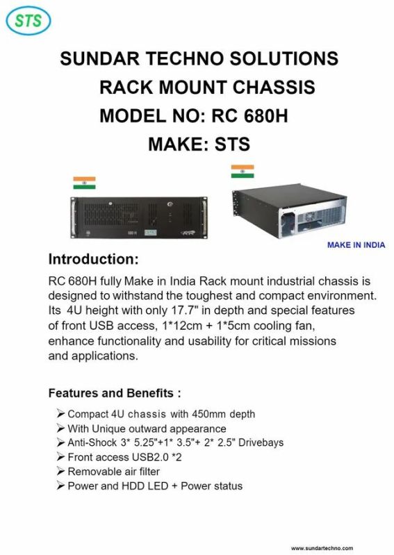 RC680H rack mount industrial chassis is designed to with stand the toughest and compact environment. it is 4U height with only 17.7" in depth and special features of front USB+PS-2 access,1*12+1*8+2*6cm cooling fan, enhance functionality and usability for critical missions and applications.