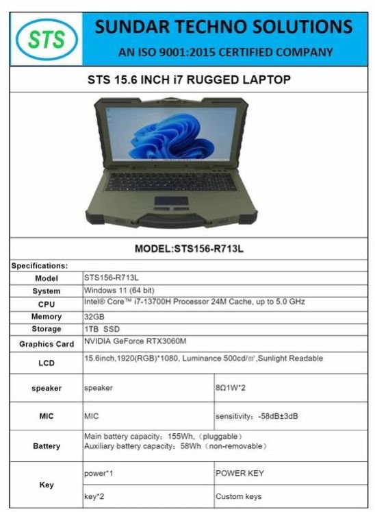 STS 15.6 Inch I7 13th Gen Rugged Laptop with Graphic Card